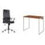A Cadeira Vancouver possui assento e encosto revestidos em tecido tipo mesh 100% poliéster, base em metal cromado e rodízios em nylon e A Escrivaninha Studio possui estrutura em aço, tampo em MDP 30mm e acabamento fosco