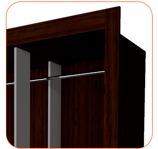 Gaurda-Roupa Luiza possui estrutura em MDF 15 mm, possui espelho lapidado 3 mm, portas de correr, gavetas com corrediças telescópicas e acabamento fosco