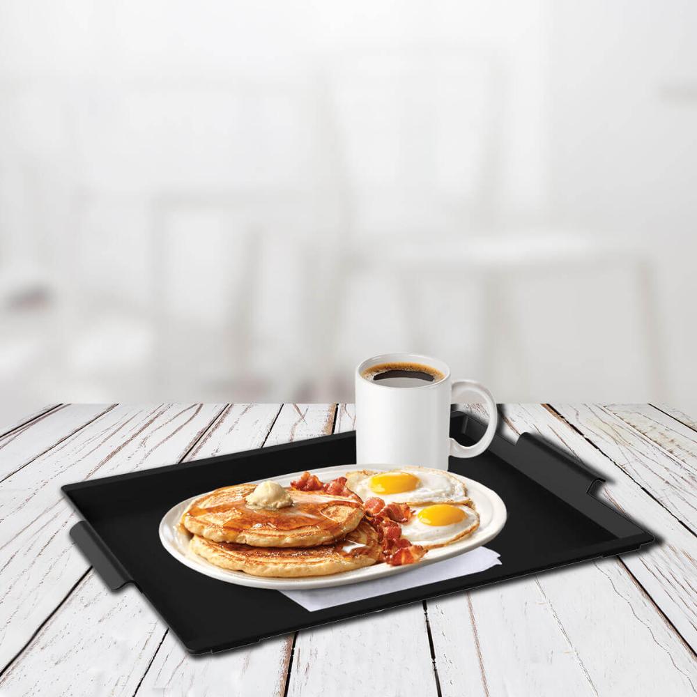 Principalmente na hora do café da tarde, para servir o café, os chás e as bolachas, as bandejas são imprescindíveis, carregando xícaras, pires, cremeiras, garrafas de café, jarras com leite e água quente, açúcar, e todos os outros acessórios de café e chá.