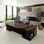 Montando o home office dos sonhos? Então comece com a Mesa Tebis! Do tipo presidente, ela é ampla para receber superbem seu computador e outros objetos de uso diário - e ainda tem 2 portas e 4 gavetas para itens de papelaria ou documentos, assim tudo fica organizado e pronto para uso. Feita em formato de U, a peça cria uma estação de trabalho prática e funcional, te ajudando inclusive a deixar tudo sempre à mão. Já a cor preta e o amadeirado combinam superbem com qualquer decoração. É ou não perfeita?