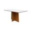 A Mesa de Jantar Anitta possui base em MDF 15mm, tampo em MDF 15mm com engrosso e aplicação de vidro laqueado 3mm e acabamento semibrilhante