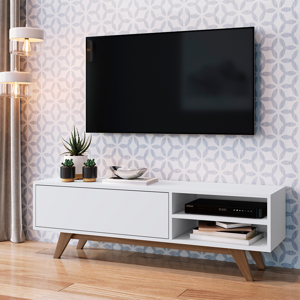 Com estrutura completa para deixar sua sala de estar bem organizada e, claro, com um visual charmoso, o Rack Ciro é a melhor escolha para quem quer criar um lar-style incrível. Além dos compartimentos internos, você também tem disponível o tampo amplo, e, juntos, eles vão acomodar os eletrônicos e aqueles outros objetos essenciais à rotina, sejam decorativos ou não. Enquanto isso, o visual vai potencializar o bom gosto desse cômodo, além de facilitar muito na hora de combiná-lo com o sofá, mesinha lateral e demais itens que você gosta de usar para deixar o centro de entretenimento mais aconchegante e com seu toque pessoal. Daí é só chamar a família toda para curtir um filme ou para um bate-papo descontraído ;)
