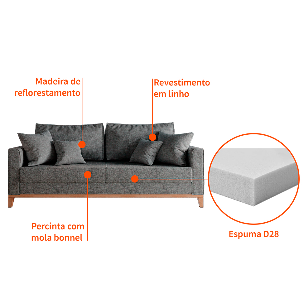 Se você busca por um móvel para transformar sua sala de estar, vai se apaixonar pelo Sofá Beny. Com 3 lugares, ele é aconchegante e possui um visual que vai elevar a decoração do espaço para outro nível. A base em madeira, as espumas de diferentes densidades e revestimento em Linho rústico Grafite são a cereja do bolo. Prontinho, você encontrou o item que faltava para sua sala! Agora é só clicar em comprar!