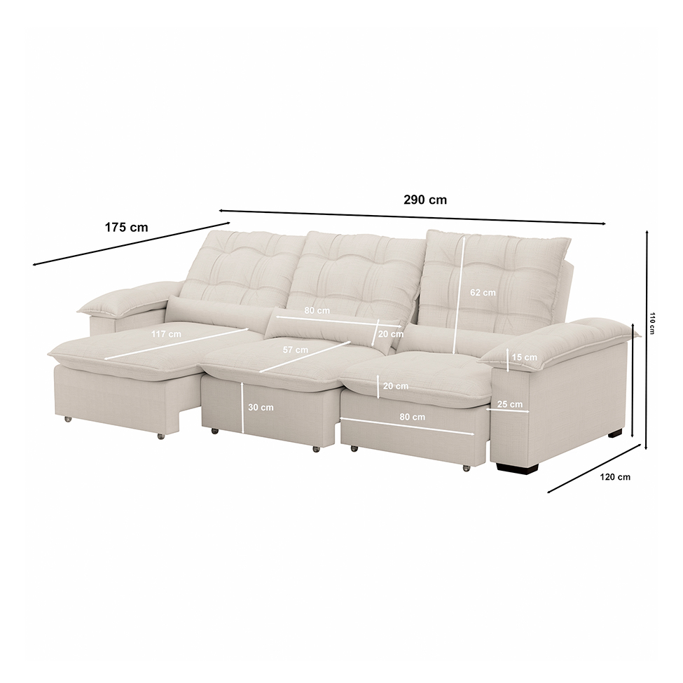 Perfeito para receber você e sua família na maratona de filmes e séries, o Sofá Porto Belo tem 4 lugares e estrutura aconchegante. Enquanto a madeira resistente garante estabilidade e segurança, o estofamento com reforço de percintas elásticas e molas acomoda bem o corpo e deixa todos à vontade. Pensado também para embelezar o cômodo, o móvel tem revestimento em Linho de cor atemporal, o que facilita combiná-lo com a decoração da casa. Já dá para se imaginar aproveitando os dias de preguiça, né?